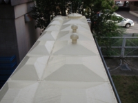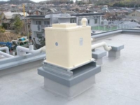 屋上に設置されている鋼板製の補給水槽が錆で漏水していた為、FRP製の補給水槽に更新しました。