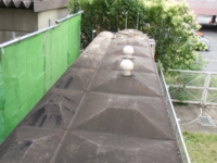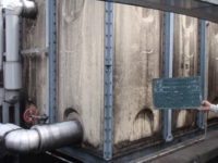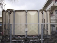 受水槽・高架水槽は、紫外線に弱いFRP(強化ガラス繊維)のパネル製が多く、特に高架水槽は日光に当たるので劣化が進みます。