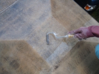 貯水槽のパネルは劣化すると薄くなって破けてしまう為、それを防ぐ為に塗装をします。