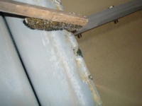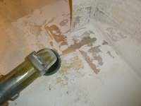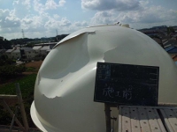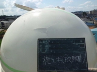 この高架水槽には通気口がなく、排水時水槽内部負圧の為、天井部分破損。