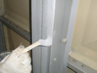 中仕切り部分の補強材に錆が発生し、これ以上の進行を防ぐ為に錆をケレンし、専用塗料にて塗装しました。