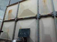 受水槽・高架水槽のパネルタンクにおいては、経過年数による、パネル接合部における漏水の発生、内部組み立てボルトの腐食、劣化の進行、タンク外部パネルの劣化の進行など、さまざまな改修工事の実施が必要となります。
