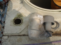 古くなった鉄蓋が錆びによる劣化でサビが槽内に落下し汚染する為、マンホールをFRP製に取り替えました。