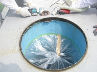 過去に施工してある内部補修の劣化が進行し、外部への漏水が発生した為、内部FRPライニング工事を新たに施工しました。